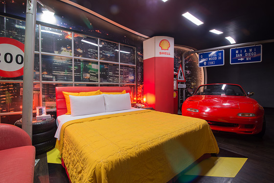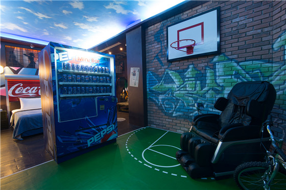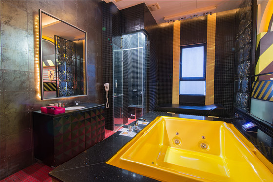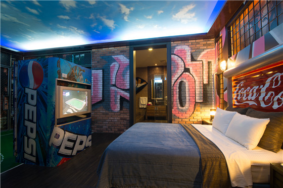 除了每間截然不同設計主題外,在每個房間入口,都採取「門裏門外,兩樣世界」的設計風格,加上MINI吧全部隱藏在櫃中,以及房內無隔間設計,使顧客在房間內,視覺達到極大的延伸效果,能完全融入室內塑造的情境。